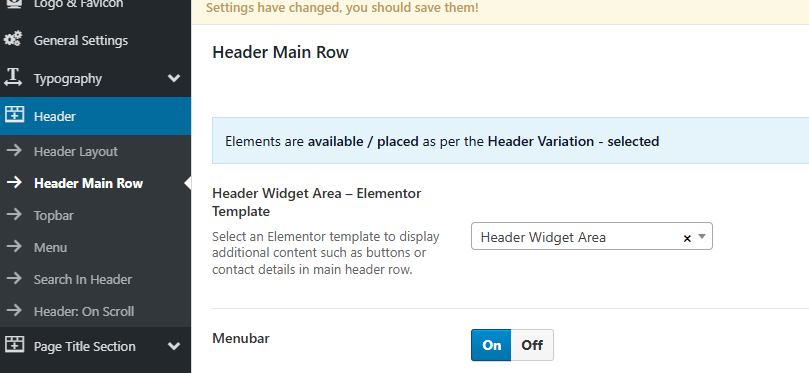 The content displayed in the Header Main Row is managed through an Elementor template.