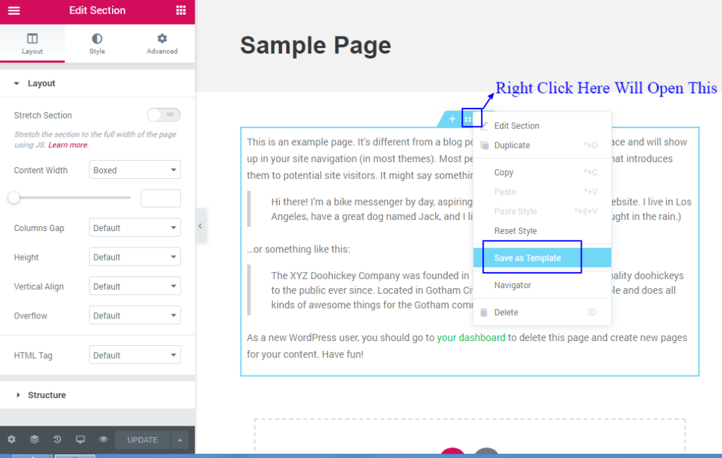 - Right Click ‘Edit Section’ of the section, that needs to be saved