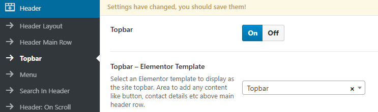 Theme Options → Header → Topbar → Topbar – Elementor Template.